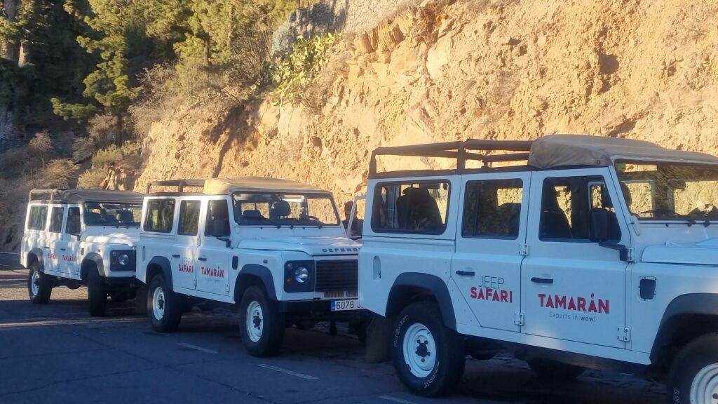 Prise en charge sur le parking de l’hôtel. Puis, les participants montent dans les huit 4×4, chacun avec un guide chauffeur expérimenté. Ensuite, le convoi s’élance vers l’intérieur de l’île.